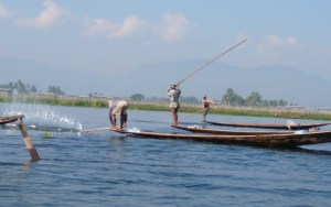 We have heard that Inle lake is severely over fished, with catches getting smaller and smaller and as we set out to explore the lake it is immediately obvious why. The lake is covered with small boats each with a man fishing. They are in boats very similar to ours but a little shorter and without an engine.