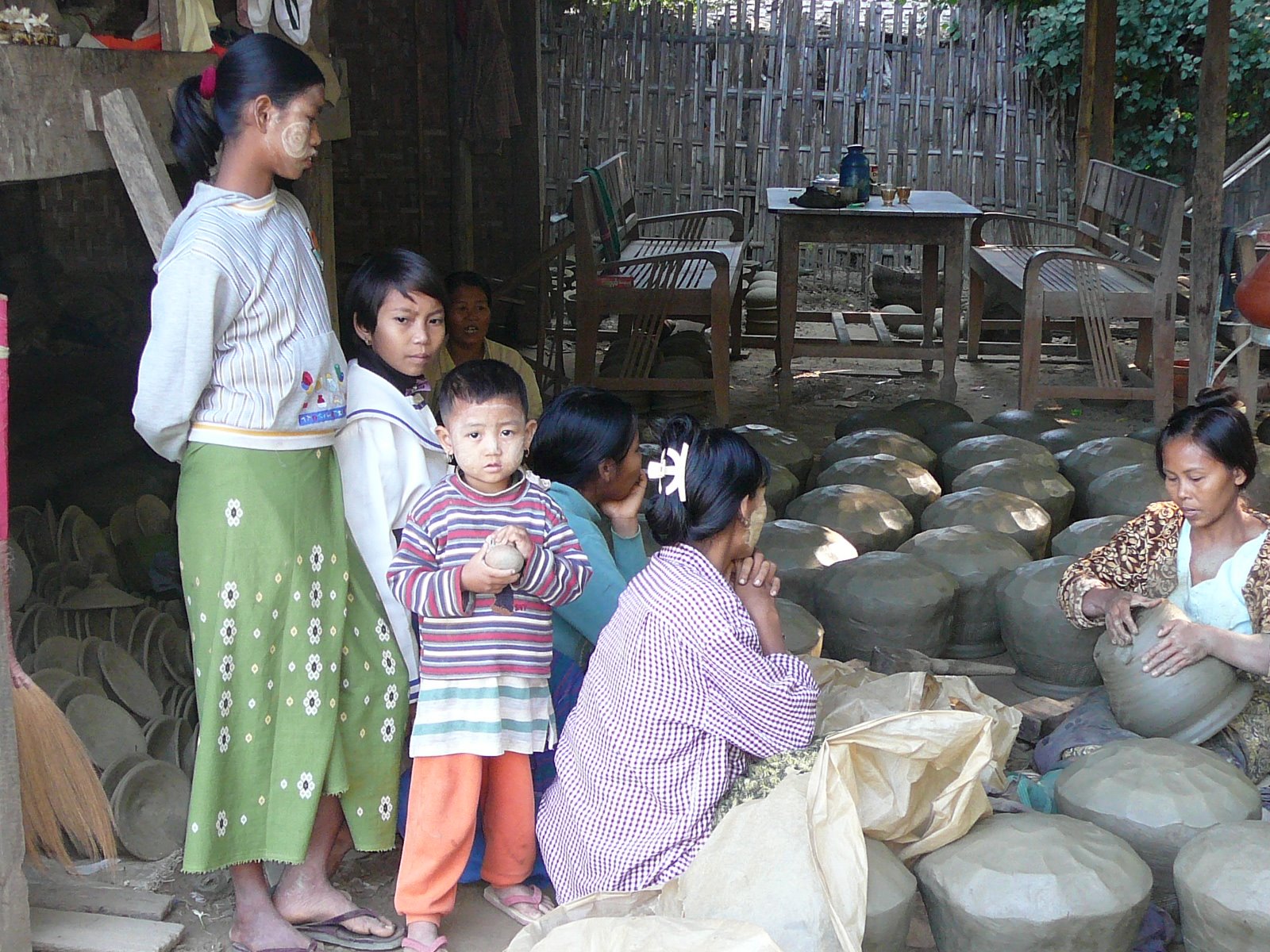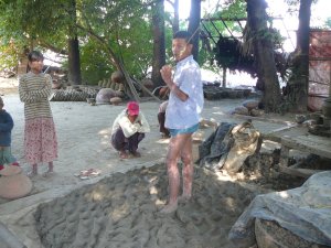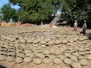 At 9:30am the next morning, our ship, the Pandaw 2, pulls into the river bank next to Yandabo a village famous for making clay pots. Here the population is 1,100, and apart from a few children playing truant, all the kids are in school. The adults are all busy making the pots, so we are greeted by just a few children and some of the older inhabitants who no longer work.