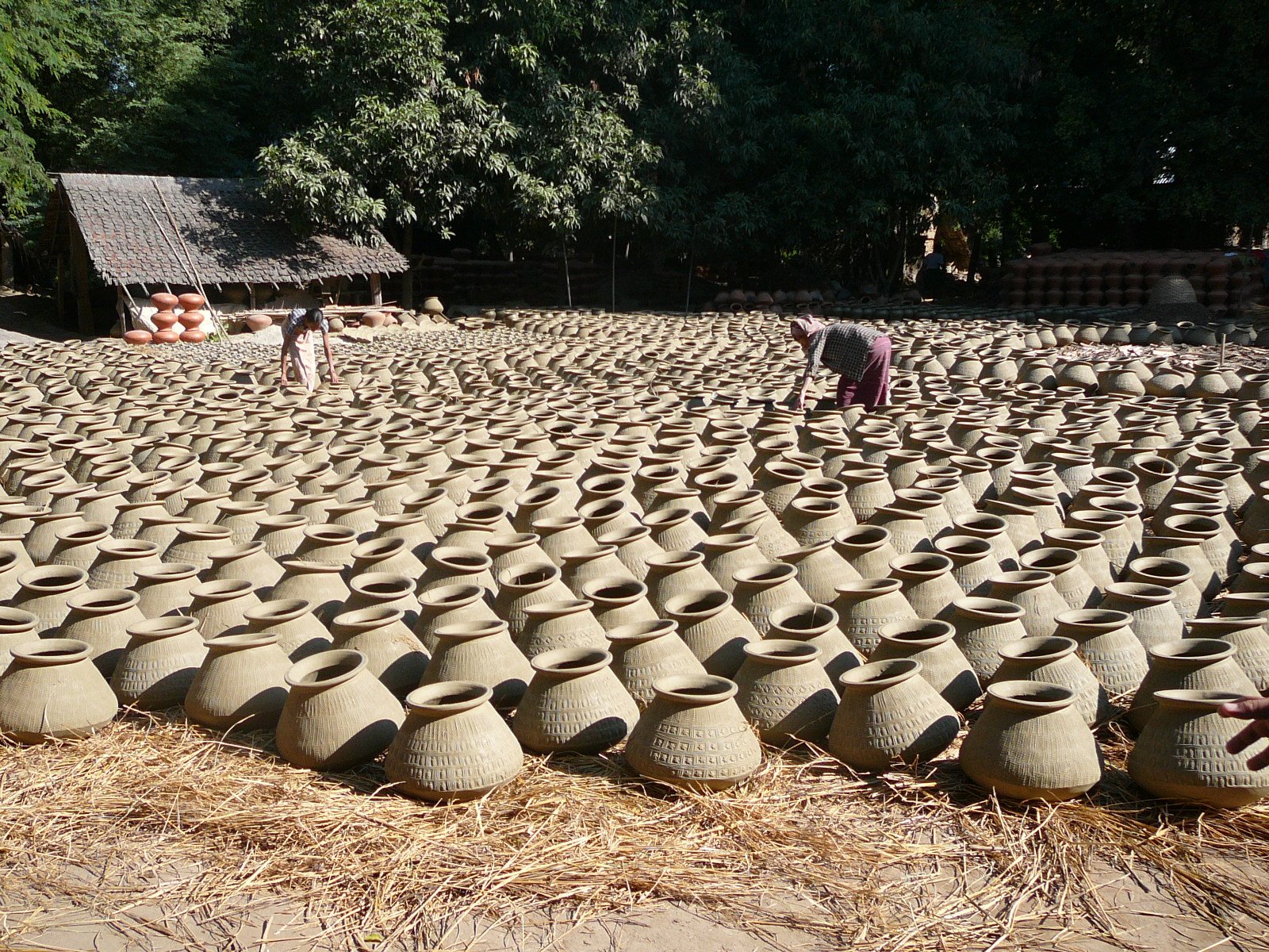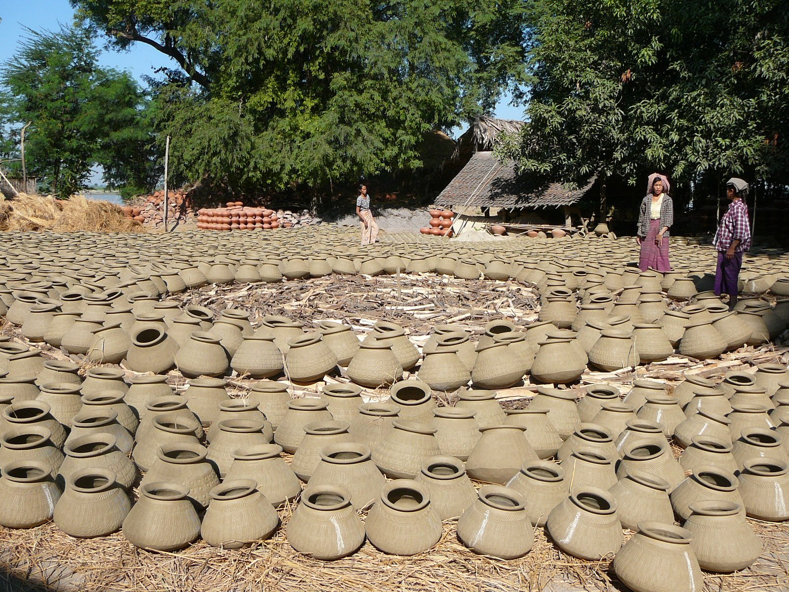 When they have made enough, they arrange hundreds of pots in a field on a bed of straw, around a huge pile of firewood.