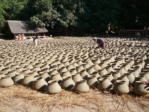 The pots are basic clay pots for cooking and for carrying and holding water. Some are plain and some are decorated.