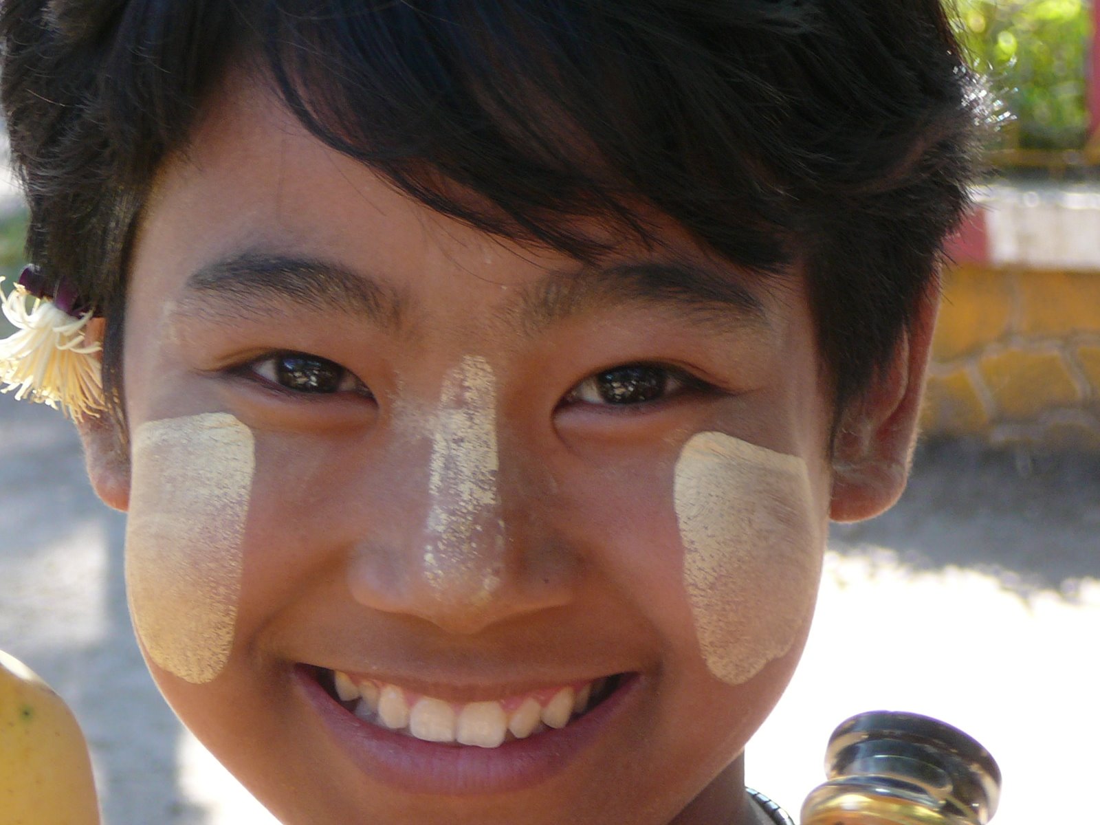 11. Men and women of all ages wear a skin cream made from the bark of the Dhanakhar tree. It protects from the sun, and helps against acne and wrinkles. It is a yellow color and the women and children paint it on to their faces every day.