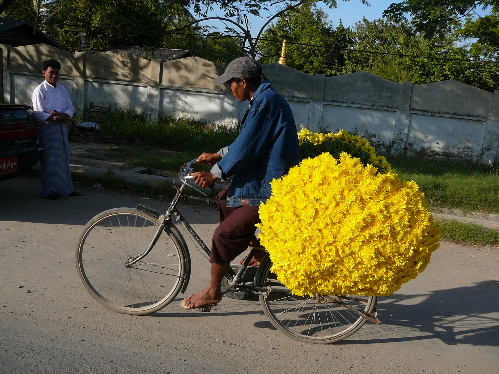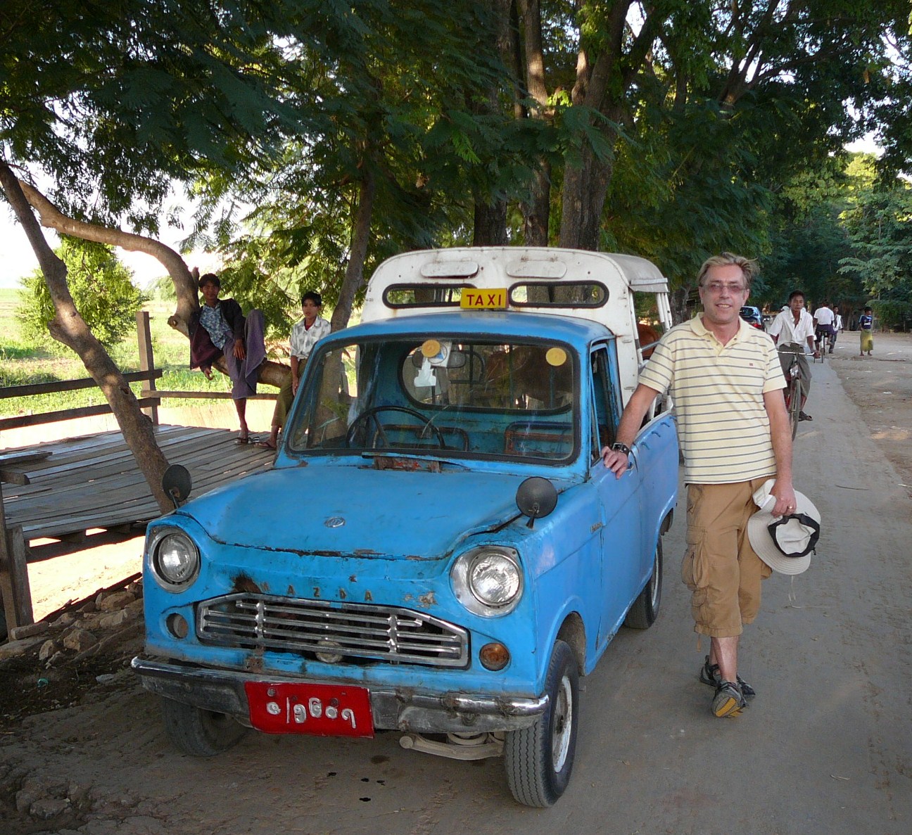 This is the first place we have seen taxis, but they are not geared to the tourists. They are Mazda pick up trucks built in the 1940’s. They are amazingly small, looking like children’s toy cars. The passengers sit in the back of the pick up truck. You could perhaps squeeze two Americans in the back, but they would be very unhappy. But up to 10 Burmese somehow manage to ride this way.