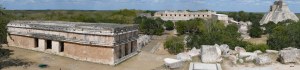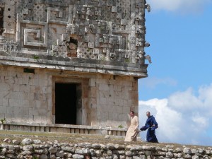 Uxmal is a World Heritage Site where considerable restoration has taken place and is still taking place. It is an hour and a half drive from Merida. The drive is easy, as the Yucatan is almost completely flat and the roads are straight, good and fast. But because the land is flat there is no scenery.