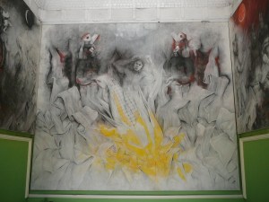 The walls are lined with murals by a local artist who was obviously inspired by Diego Rivera. Painted in the 60’s and 70’s, the paintings are art deco in feel with heavily stylized figures, depicting the Spanish Invasion and their struggles with the Mayans.