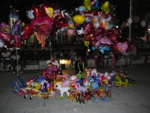 There are vendors everywhere carrying enormous bunches of helium balloons most with a valentine theme. Each vendor must have at least a hundred balloons floating above them and it is hard to believe that they will not become airborne.