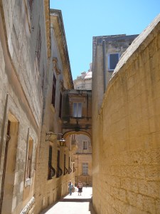 We could easily spend all day enjoying the sights of Valletta, but there is more of the island that we want to see. So we rent a car and set off to visit the ancient city of Mdina, Malta’s first Capital. It looks a little like a fort because of its massive city walls rising out of a limestone plateau high above the rest of the island. Inside the walls the narrow winding streets are lined with imposing aristocratic houses, and huge churches and monasteries.. Even though the town was built in the 18th and 19th centuries it still reeks of the power that created it. And again, nothing has been allowed to alter the original look and feel of the town. Although it is a tourist destination, the shops within the walls are all small with no noticeable signage, and the streets are somehow miraculously quiet.