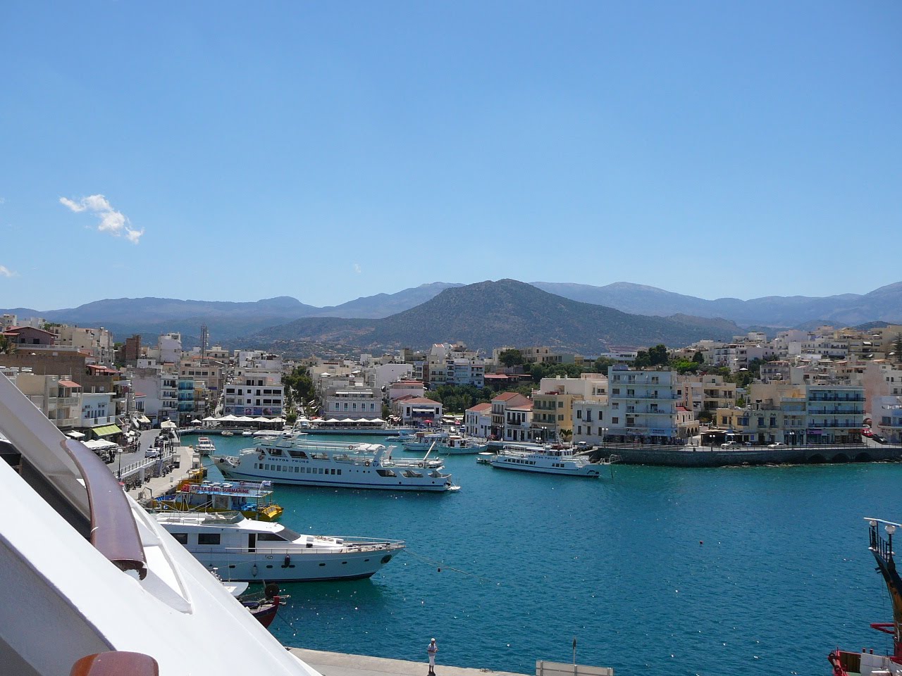 We awake the following morning to find our ship approaching Crete. We can again stand on our balcony and watch the ship enter another beautiful port. Well, it hardly seems to qualify as a port. We are arriving at Aghios Nikalaos, and are on a quay no longer than our ship that runs along the main promenade in the center of the town. We literally step off the ship and into town.