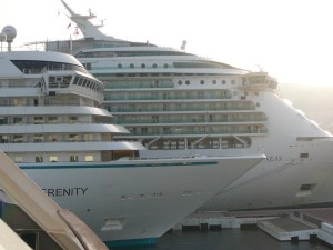 There are 5 cruise ships docked at the port and we are the smallest one. The place is jam packed and we count almost 50 coaches waiting dockside for those people who have booked coach tours.