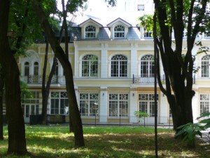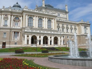 It also has the Black Sea on its doorstep. And it is literally a doorstep. The City Center stops right at the edge of the cliffs. Between the City and the cliff edge is a wide pedestrian boulevard lined with trees and gardens. On one side sits the Black Sea and on the other magnificent 19th century classical buildings with baroque overtones, and at the end of the boulevard sits the city hall resplendent in its dramatically painted white and red facade. And the only way down to the sea from this expansive Promenade is by the Odessa Steps . It is a city built for royalty, and I feel quite at home.