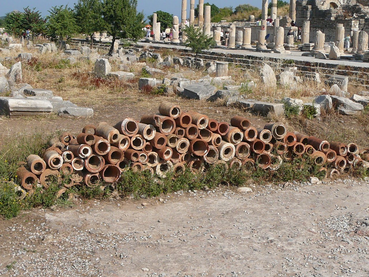The infrastructure for a city of that size was amazing. The streets all run down hill to the sea and there was a system to release water at the top of the streets, which would run down through the city cleaning everything in its path. There were also drains from the toilets and baths. The drainpipes were made of twice baked clay, and the manufacturing process was so good that there are still piles of drain pipes in perfect condition stored at the edge of the City, looking like an overstocked section of Home Depot.