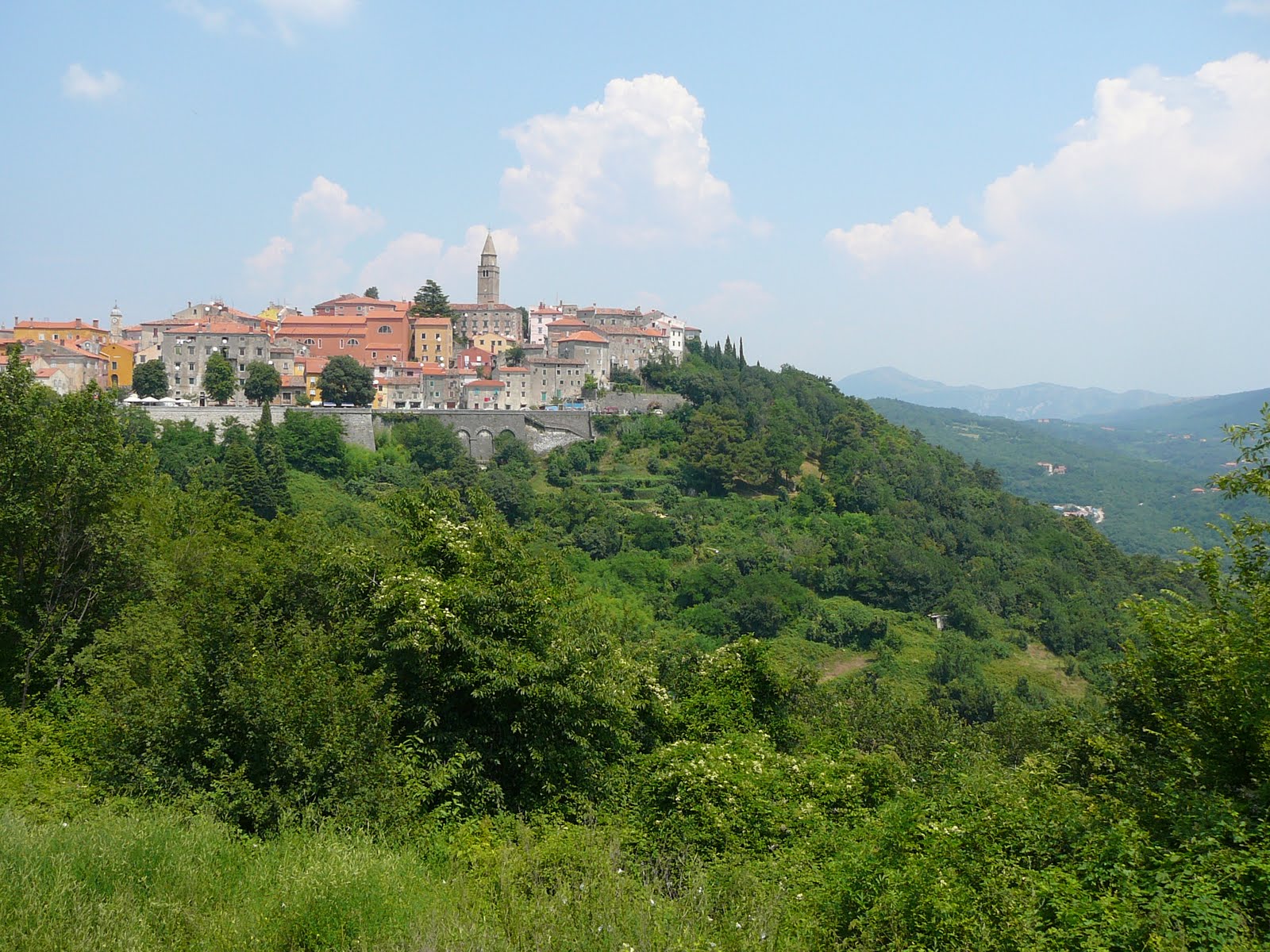 Istria, blessed with a slightly more appealing name, doesn’t quite match up to Slovenia in the looks department, but comes in close second. The countryside is a visual feast with steep sided mountainettes (well they are too small to call mountains and too steep to call hills), adorned with small red roofed villages perched on top peeking through the surrounding woods.