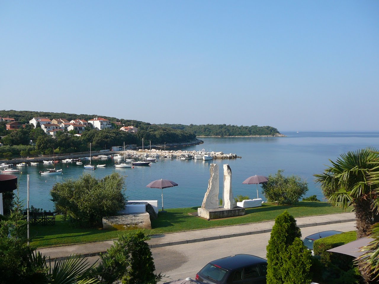 The hotel itself is situated in a charming small village a couple of miles outside Pula. There are just 10 rooms and we have one facing the sea. There is a large balcony with a delightful outlook, and it is just steps from the rocks from where we can swim unencumbered by campers and caravaners.