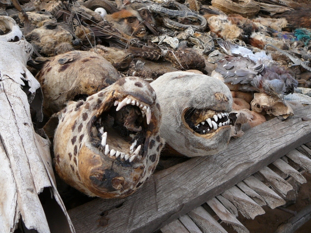 I am shown into a rather pathetic little hut filled with more animal parts and a very old man sitting on a stool. He is dressed in western clothes, with a beautifully pressed camel coloured silk shirt and matching trousers. You could sharpen a knife on the creases, and I suspect he has.