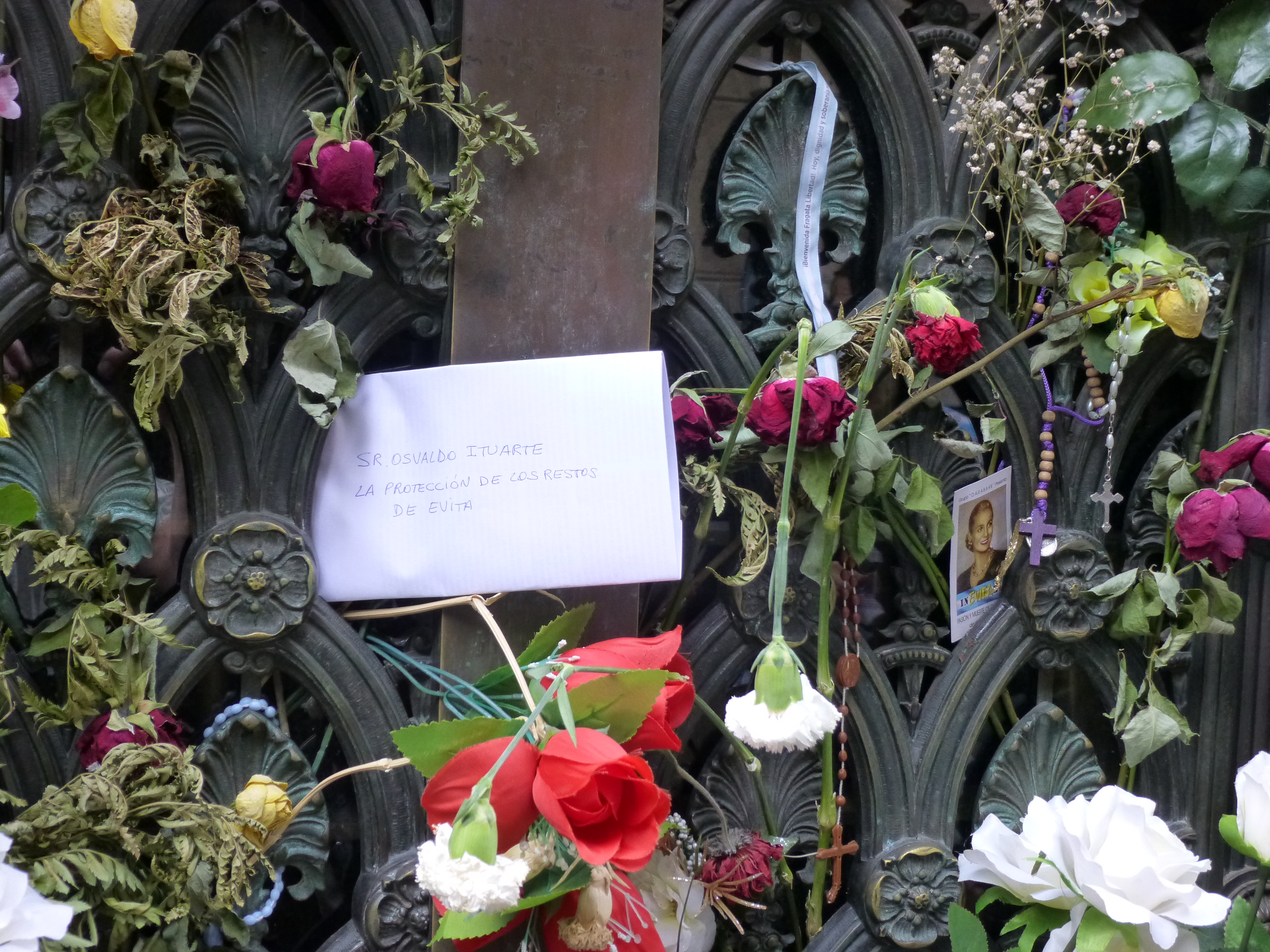 This is almost the only tomb in the entire cemetery where people have left things in honor of the deceased. The mausoleum gates are covered in flowers in a gesture of love and respect that is recognised all over the world.