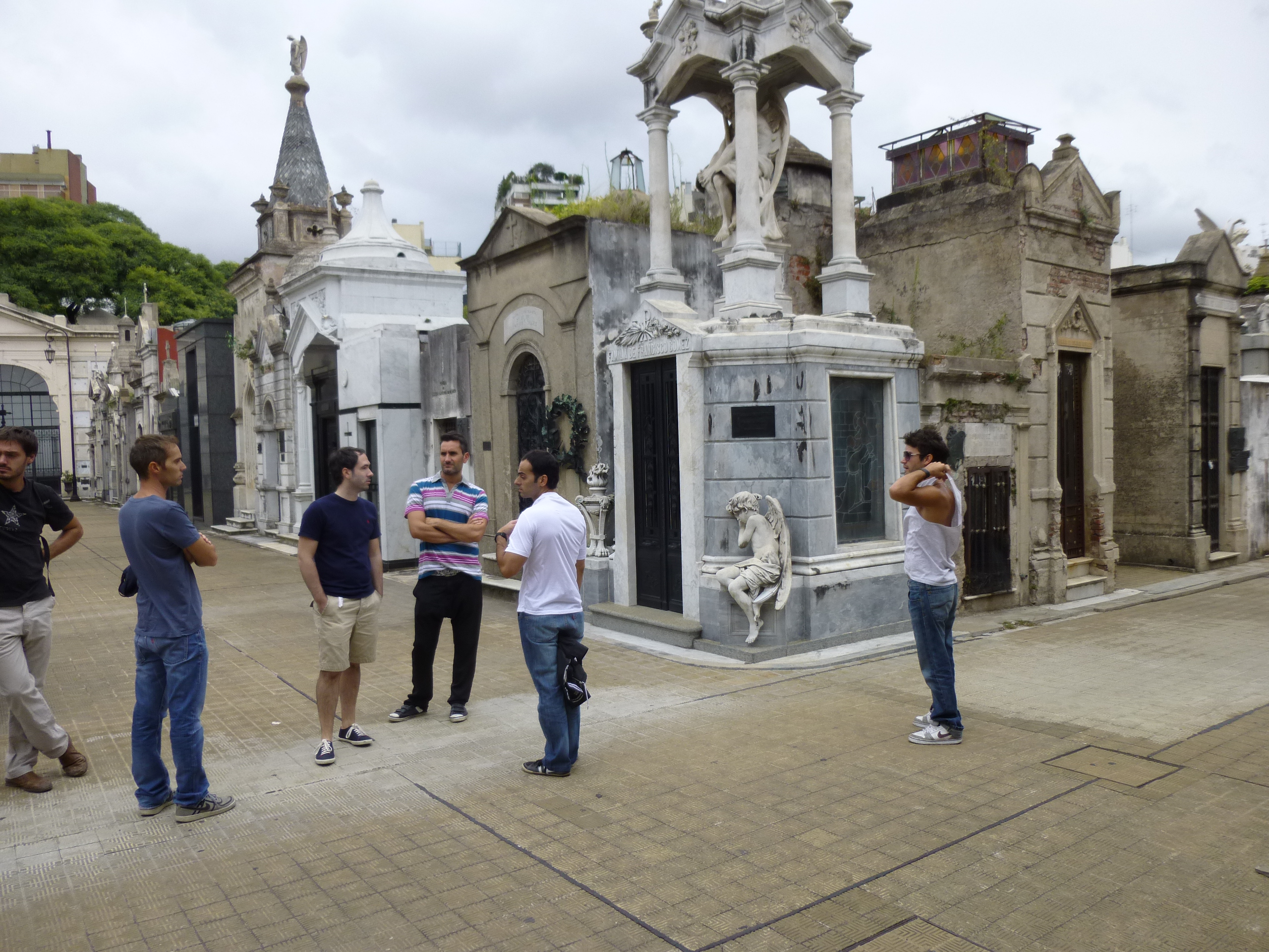 For an hour we futilely search the cemetery for a clue as to her whereabouts. We know that there will be dozens of gay men prostrating themselves at her feet (or what is left of them), so we decide to follow a gaggle of Argentinian gays hoping they will know the way. At first they seem as lost as us