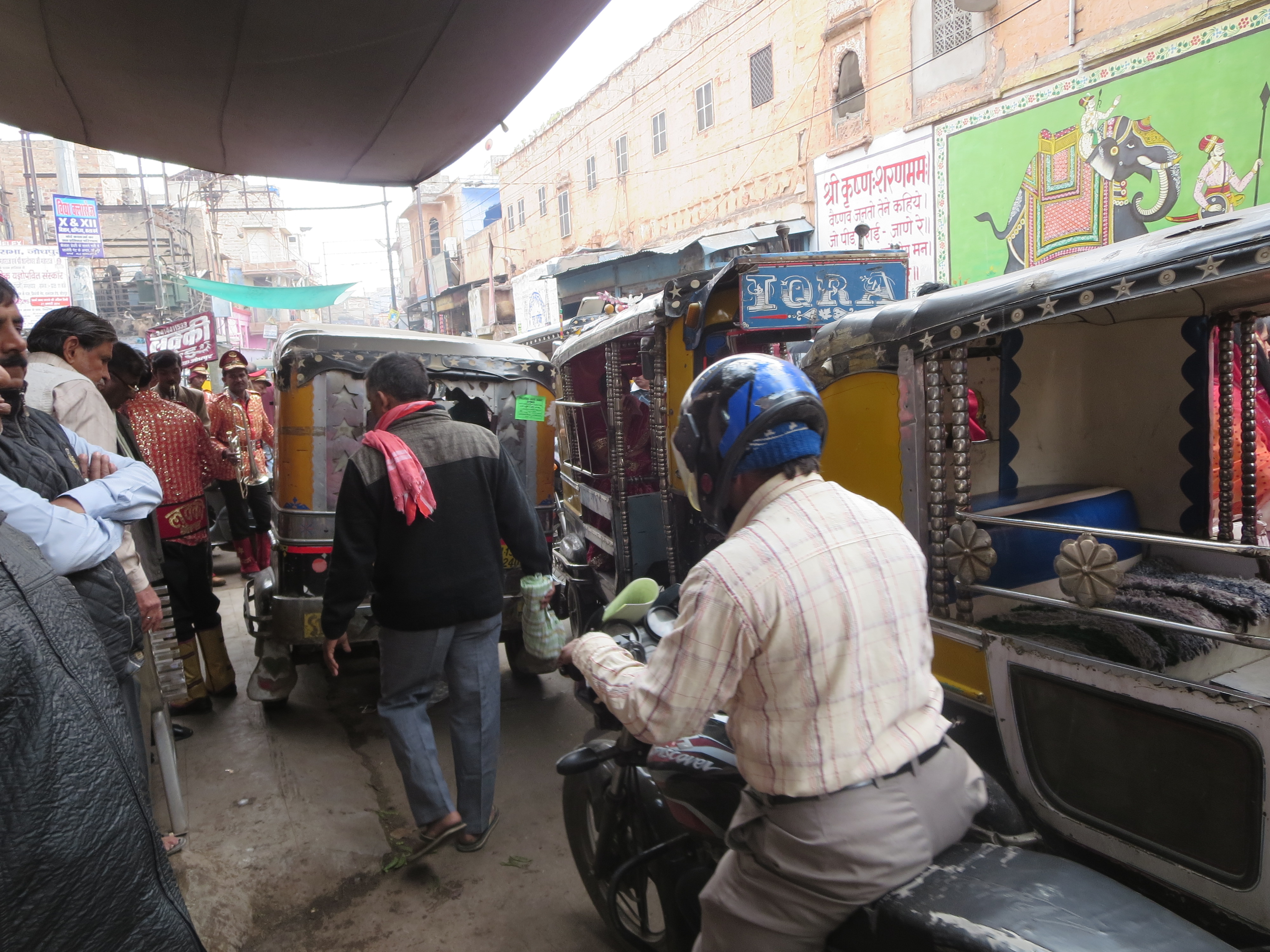 I tried to think of another term for the city, as squalid is such an unpleasant word and carries a taint of criticism with it. But squalid is the perfect word to describe Jodhpur. It is the second largest city in Rajasthan. The old town just seems to be one huge market, lined with tiny streets. Every building is a shop. Those that can’t afford to rent a store, simply throw a filthy blanket on the street and tip their merchandise on top. The streets are jam packed with people, dogs, cows, motorbikes, crows, Tuk Tuks, pigeons and still more people And all of those things produce either noxious fumes, noxious odors or excrement. Some of them produce all three. Navigating your way through the streets is a constant hassle