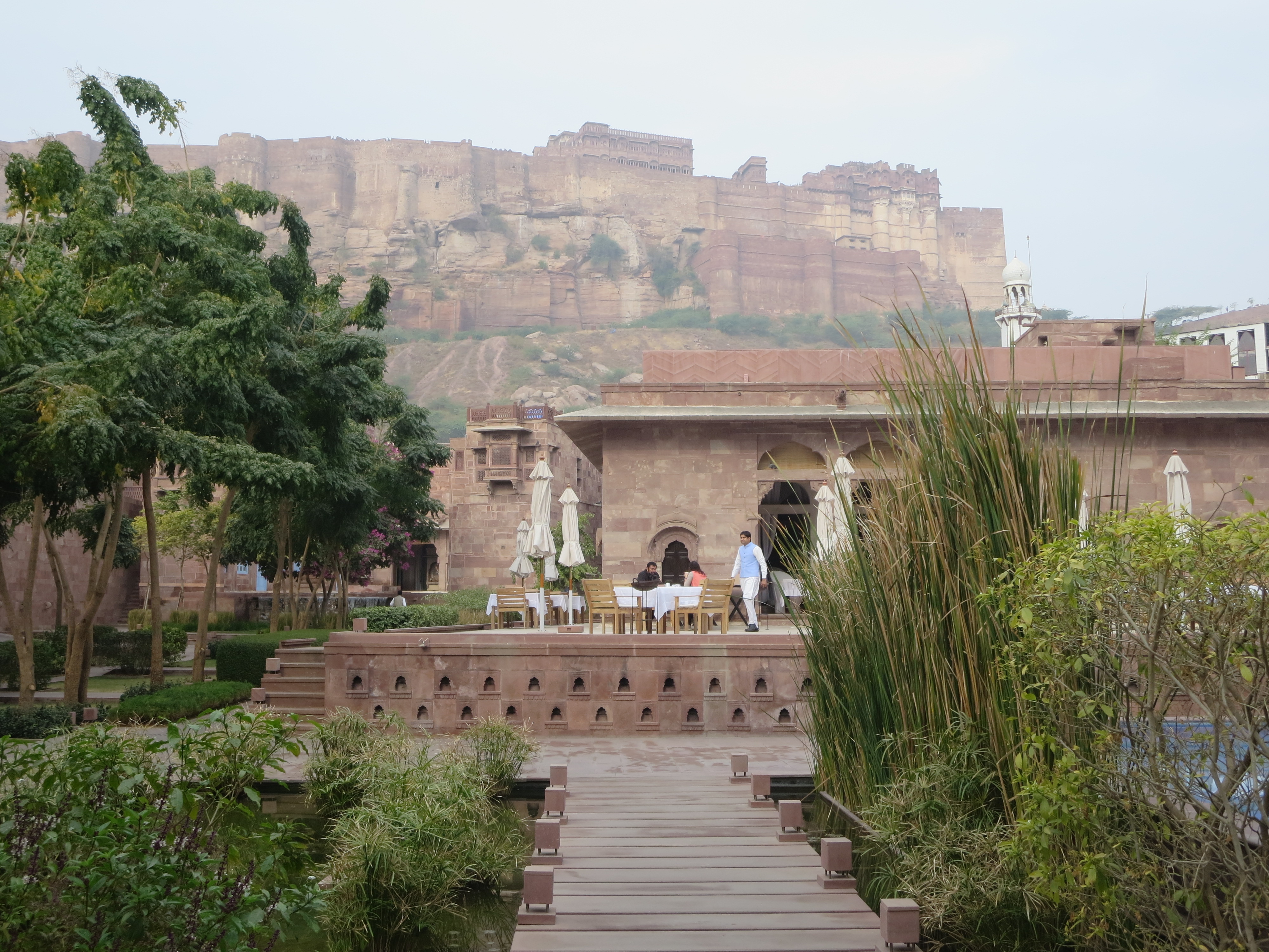 As we approach our hotel in Jodphur, we are underwhelmed. We drive through many of the narrow filthy streets only to be greeted by a rather ordinary entrance. But once through the archway, the fabulosity meter squawks once more. The view is amazing