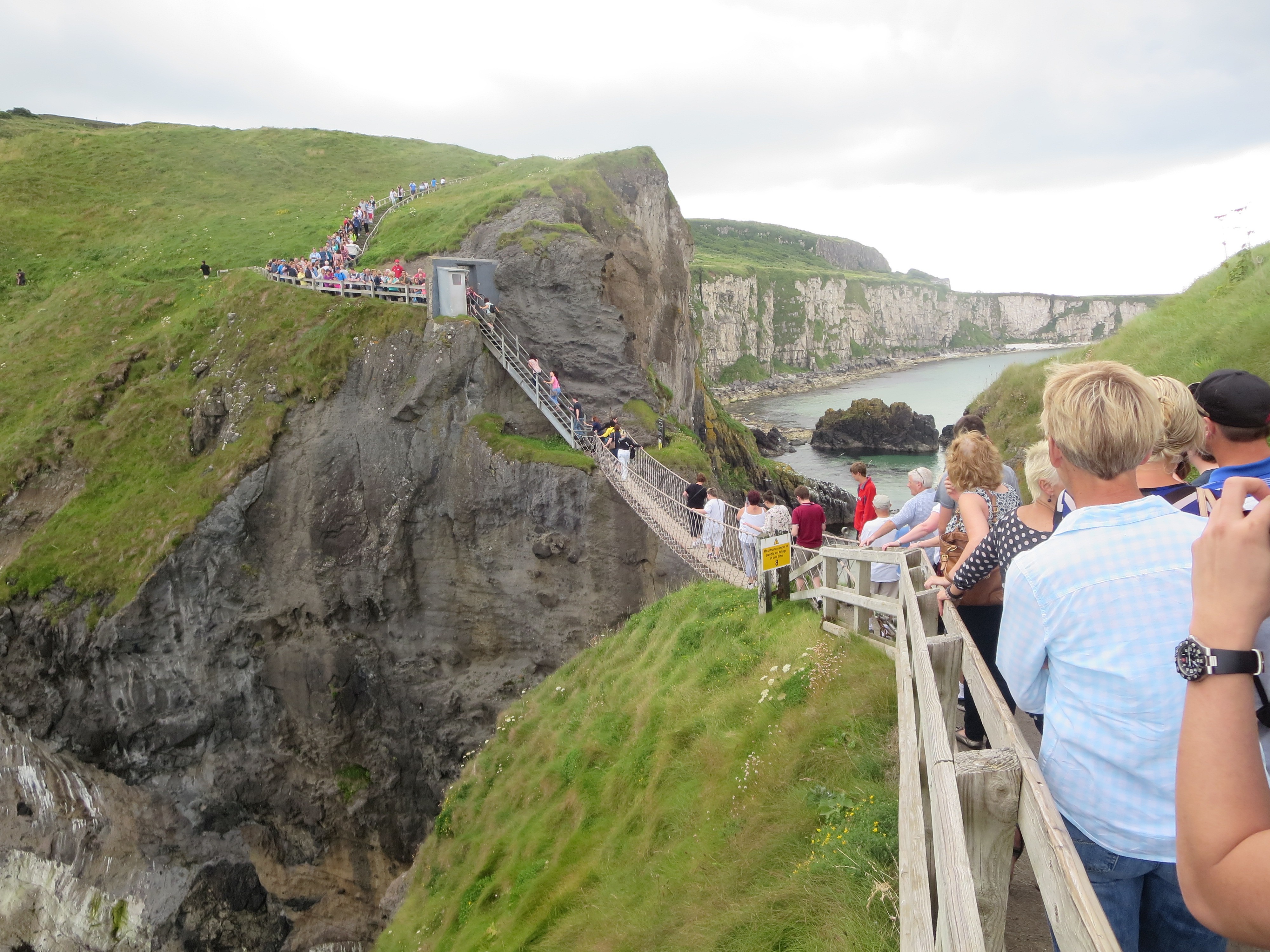 or you can walk across a rope bridge hundreds of feet above the sea, to a tiny island