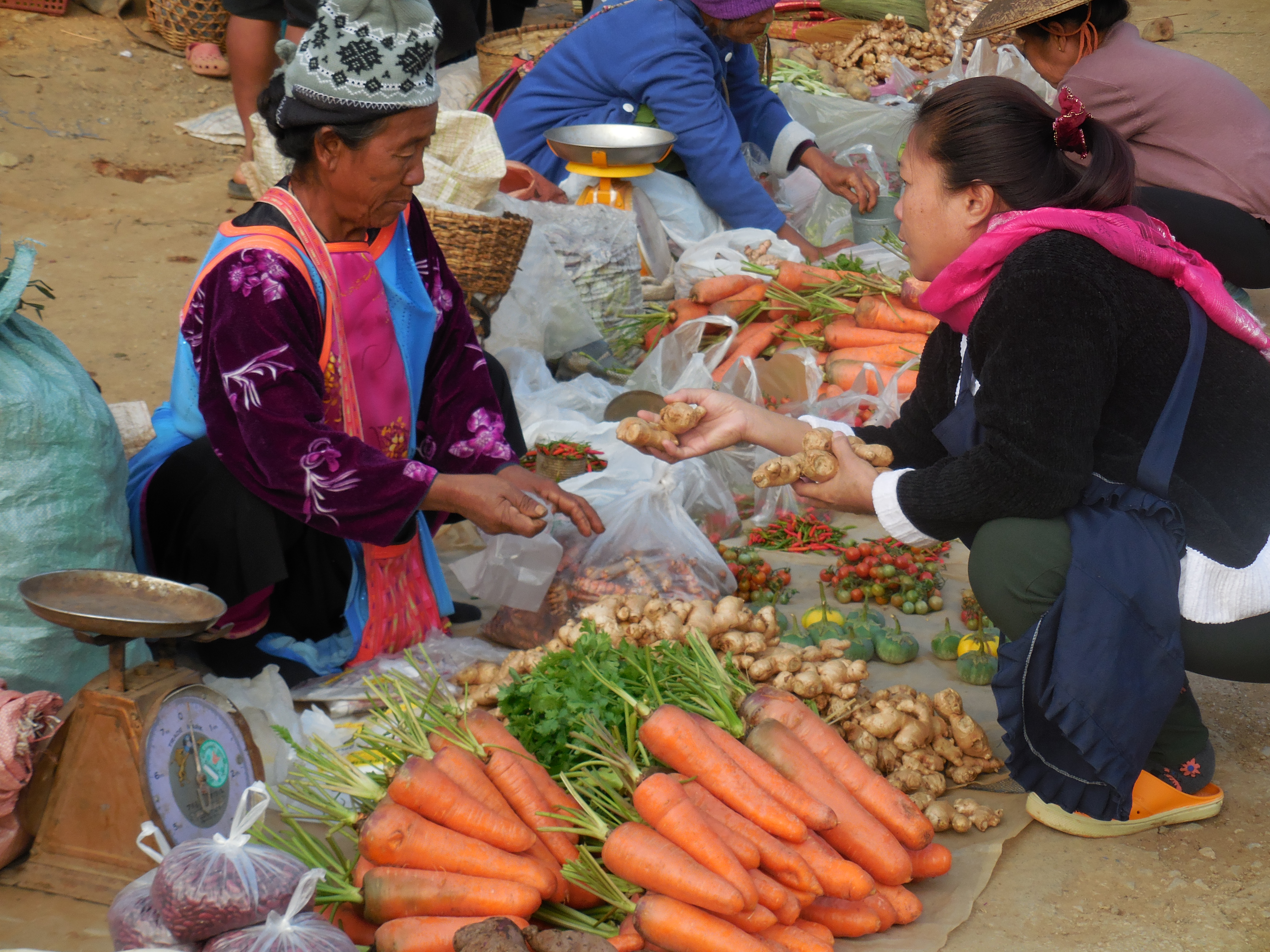 They are all here to be seen and admired and to catch up with friends from other villages. But they are also here to do business. The vast majority are selling vegetables, but the occasional one has something different to offer