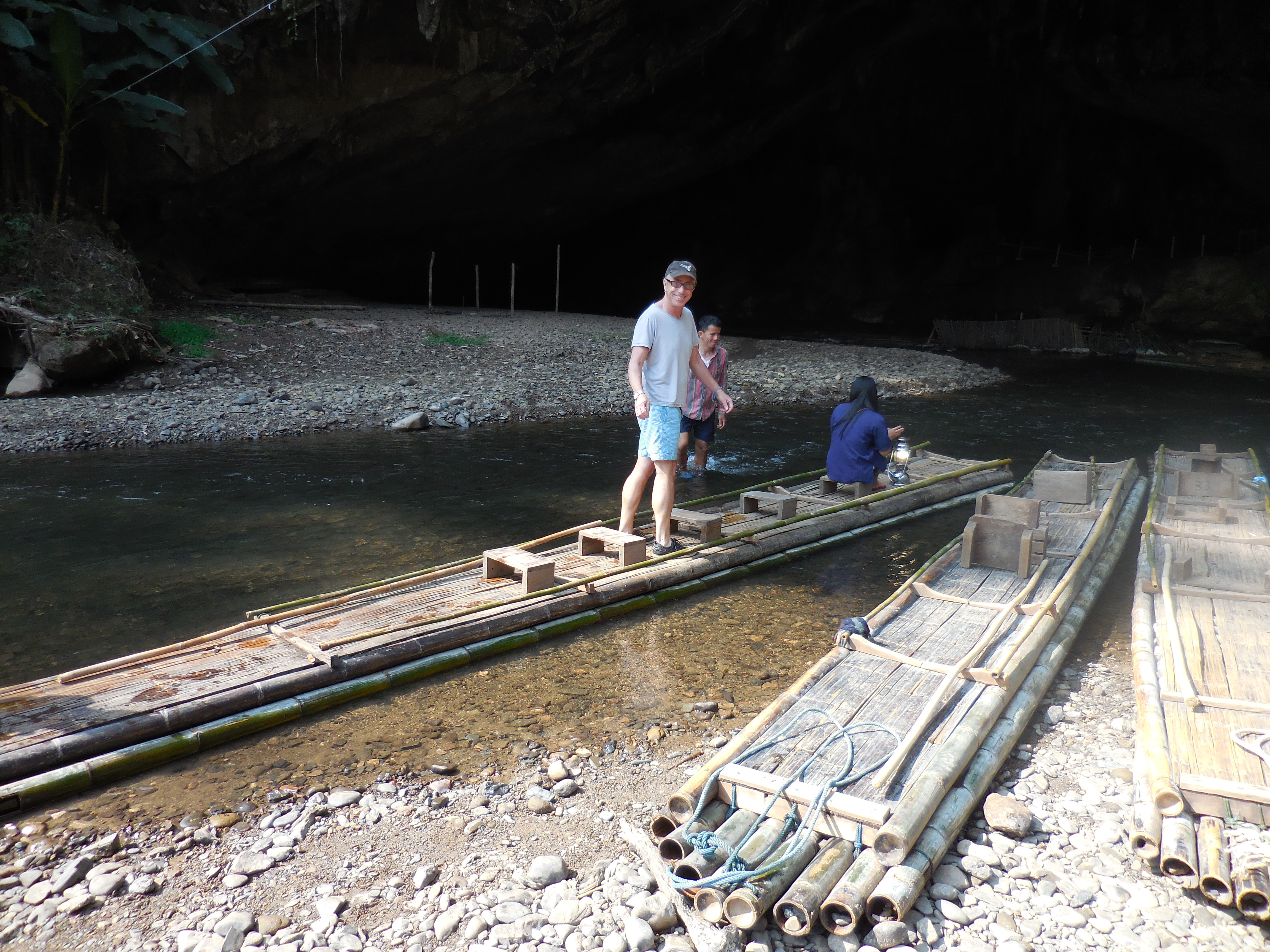 Our first stop after breakfast at the River Inn in Soppong is to the local caves. The area is famous for its caves and we are heading for the Tham Lod Cave, a particularly large one, with a river running through it. In fact it is more like a tunnel with three huge caves off it. We have to have a guide and a private boat to travel through it, and pay about $15 for the privilege. This is quite a large amount of money for the area and so we assume that we will get an English speaking guide and a decent boat.