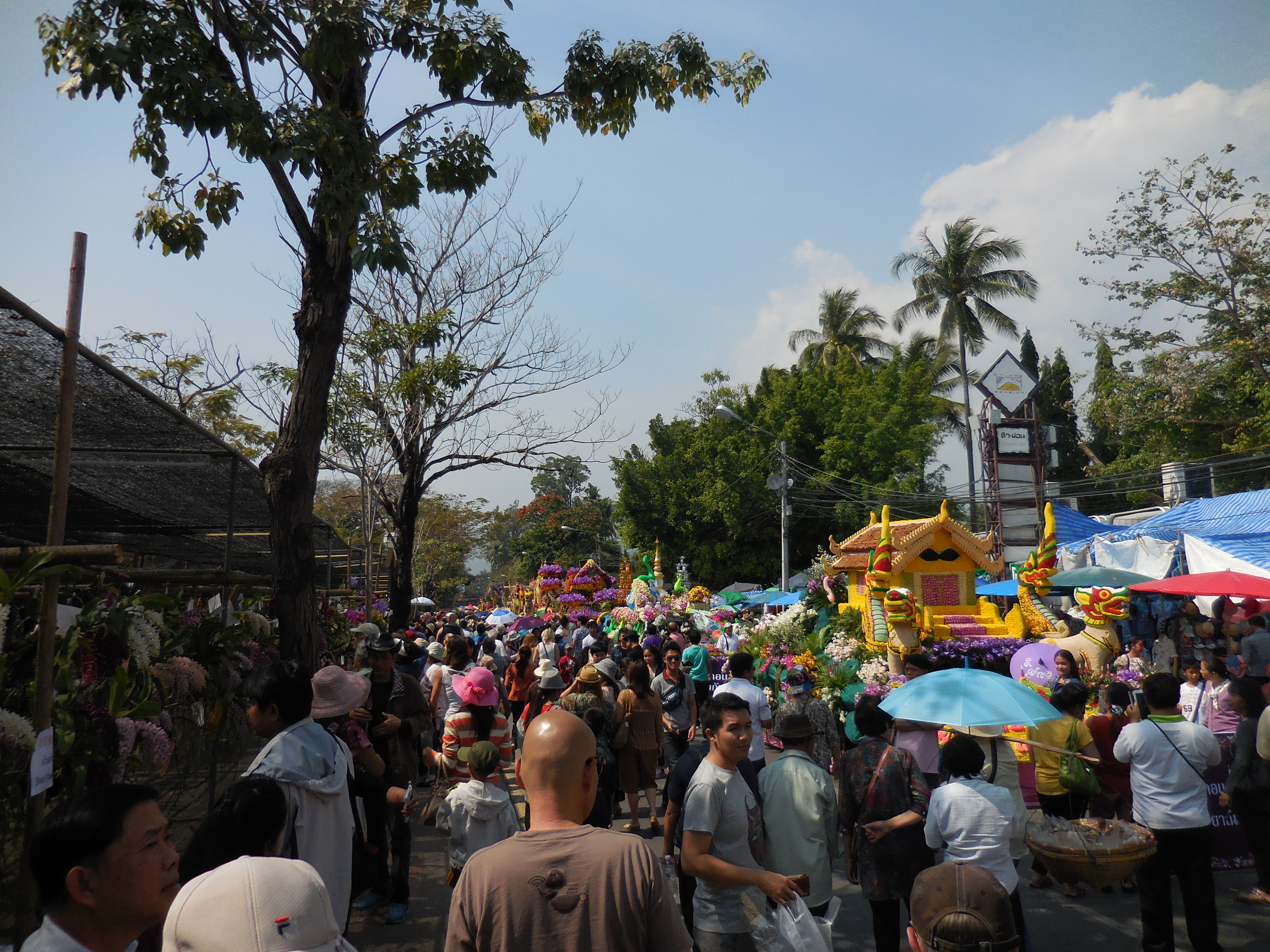 While we are here, Chiang Mai holds its annual flower festival; a huge three day spectacular that brings crowds from all over Thailand and around the world. I could tell you that our visit was planned around this festival, but it would not be true. We only found out about it the day before it began as we were walking through their most beautiful park and saw all the preparations .