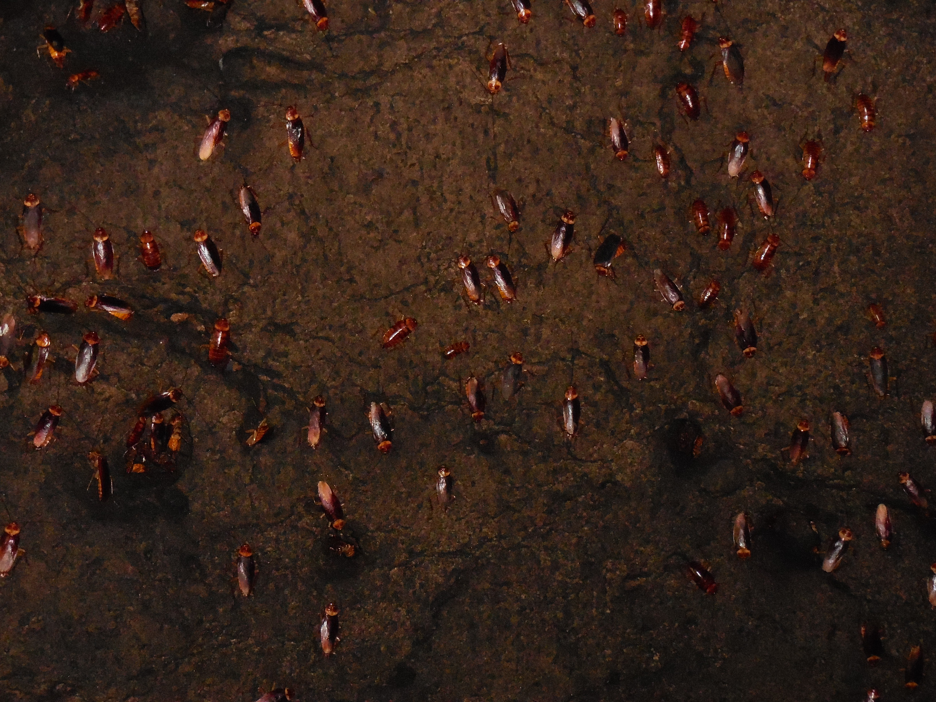 They are everywhere. They cover the walls which isn’t so bad, but also the walkway which is. We try hard to avoid stepping on them but the occasional crunching sound tells us when we have been unsuccessful. They do not try to avoid stepping on us, and feel free to scurry across our shoes, but fortunately do not venture any higher.
