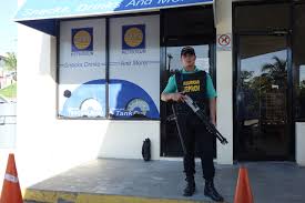The most noticeable thing was the police and security guards. Police patrolled the streets on foot, on motorbikes and in vehicles. Every bank and every gas station had at least one security guard. The guards seemed young and inexperienced and yet they carried weapons. Nightsticks hung from their belts while automatic rifles were held prominently in front of them. When we stopped for gas we were ushered to the pump by one of the guards who stood in front of the car, automatic weapon at the ready, while an attendant filled the car with fuel. Once the transaction was successfully completed the guard stood aside and allowed us to pass