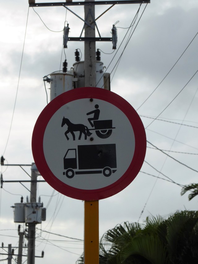 Today Highway 1 looks like something from a Sci Fi movie where the entire population of the earth has been killed leaving the occasional survivor to wander the roads in an old car found discarded on the side of the road. We drive for miles without seeing a car. But now, as we leave Havana, what we do see is horse and carts. Sometimes they are on the grass verge, sometimes in the slow lane and occasionally in the fast lane coming towards you. It is a surreal experience.