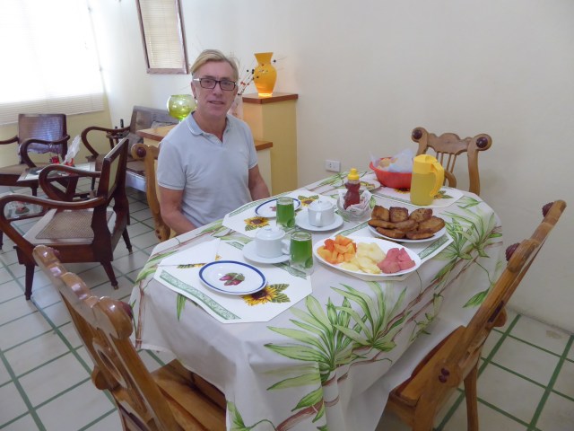 Vivian shows us her bookings for the next three months and she seems pretty solidly booked. She says she does very well but that the trouble with offering a place for $15 a night is that she gets a lot of very cheap guests who often only stay for one night. She also says they refuse to buy breakfast because they won’t pay $5. She is so happy we are having breakfast as somehow she makes good money on that.