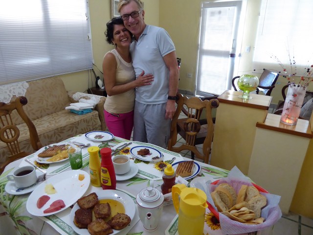Over the next couple of days we learn Vivian’s story. She has her father to look after. She has a husband who works, but we never quite find out what he actually does. He spends most of the time wandering around shirtless with a large stomach hanging over his belt. He smiles when he sees us but makes no effort to interact. Vivian explains that he does his work and she does the Airbnb. They have a son, called Darian who flies to Cancun in Mexico as often as he can afford to and brings back all sorts of stuff to sell in Cuba. We tell him we saw people like him with all their merchandise at the airport. He says he doesn’t do that, he just brings back two suitcases of stuff to sell. We wonder what that can be. He arrives back from one such trip while we are there. He is perhaps 25, very friendly and nice, but we both think he is a Mama’s boy which having met Mama comes as no surprise. From the moment he is home there is a steady stream of young men knocking at the door to buy merchandise. We never actually see them carrying anything. We wonder a little more about what it is Darian is selling.