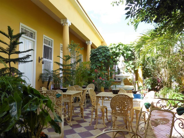 The hostal is owned by a Cuban couple who I would guess are around 50. They seem to do nothing to help Aliet.  The wife is impeccably dressed in an elegant suit, white blouse and colourful chiffon scarf artfully thrown across her shoulders. She makes the occasional appearance, walking gracefully through the garden, waves condescendingly to her paying guests and moves on without saying a word. The husband  wears rumpled chinos and a T shirt. He can be friendly but would rather not be. They leave the role of the gracious host to their 18 year old son, which he seems to enjoy.  He chats amiably to all the guests while sporting a deep tan, long carefully groomed hair and a white tank top and white shorts that match his perfect white teeth. Everyone seems very happy to talk with him. He should go far in life.