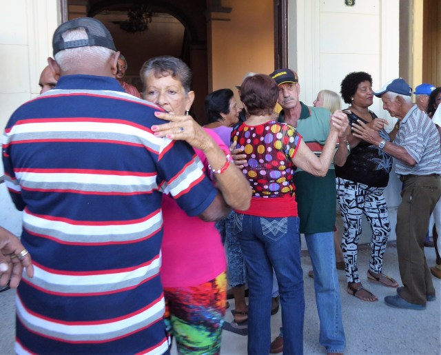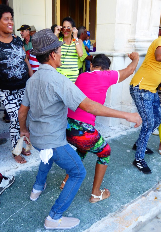 We are making our way to the central square, attracted by the sound of great Cuban music. It is 4pm on Sunday afternoon and the Plaza is full. In the entrance way to one derelict building a party is going on. A small area has been roped off for the band