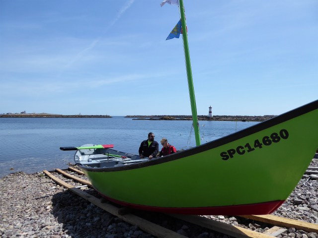 Meanwhile Jean starts talking to us about their lives and their boats or dories. They are particularly proud of one that was built in the 1940’s in a particular old fashioned style.