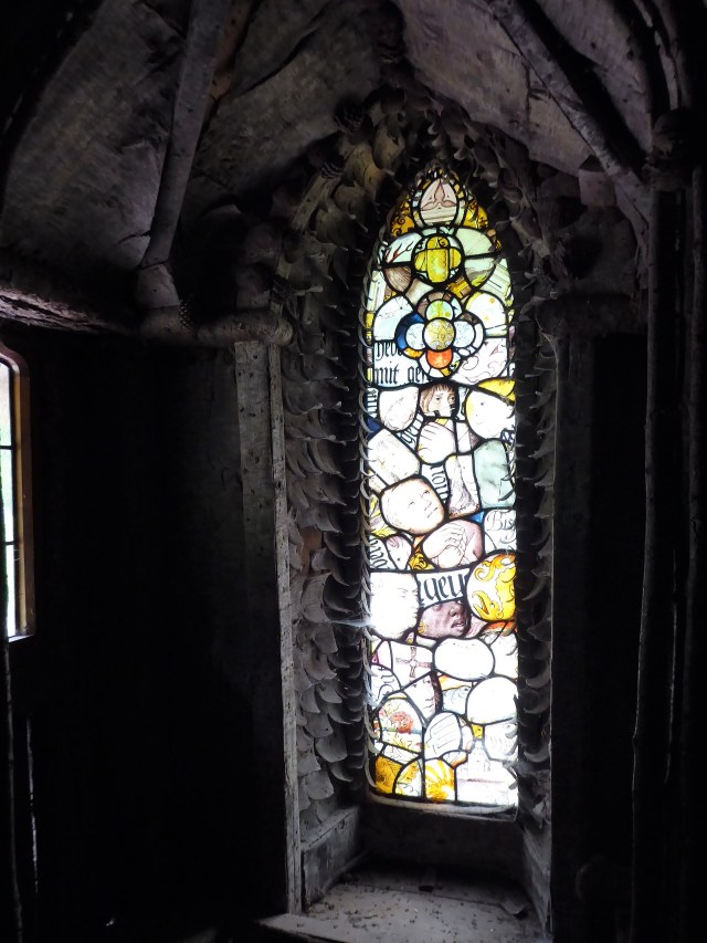 One floor is made from “cobbled” deer knuckle-bones while another from sliced sections of tree trunks and branches