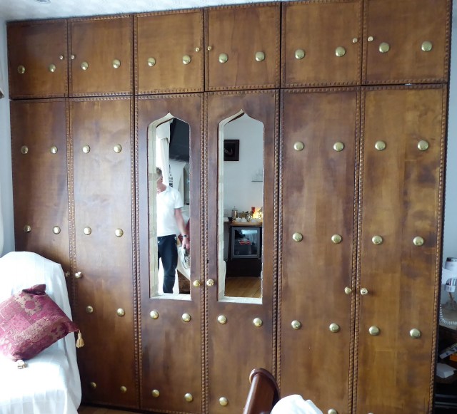 Finally she shows us through the house and into our room. The house is definitely more interesting on the inside. Walls are lined with Middle Eastern memorabilia and antiques. Arabian swords line one wall, ferocious masks another. Our bedroom door is anything but ordinary. It has large brass studs, a huge brass bolt, a separate lock and a door handle. I have no idea what an Arabian cell door looks like, but if I had to conjure up an image of one it might look just like this.