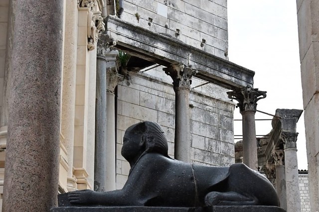 It would also have loved the entire palace. Diocletian believed that you can never have too much of a good thing, and he did “over the top” with enthusiasm. My kind of guy. Not content with importing a wonderful granite Sphinx from Egypt, he imported twelve of them to stand guard around his palace.