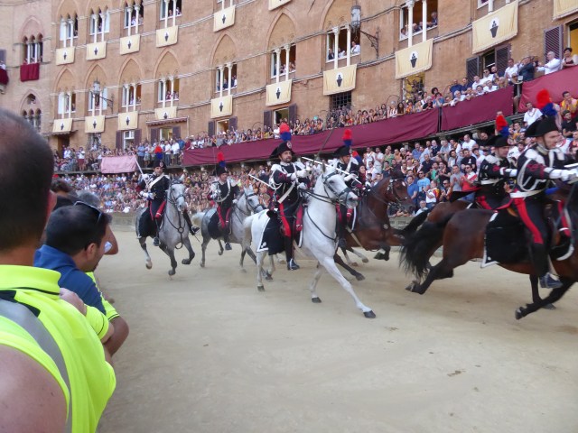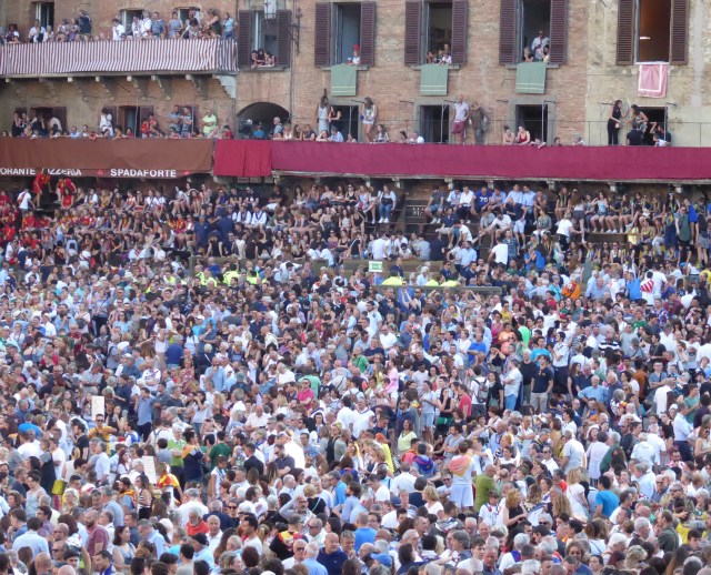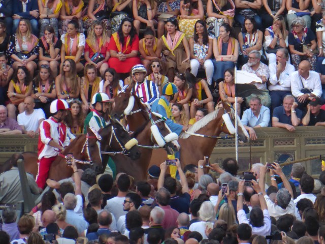 We are by the way, no longer on the cruise ship. We are now touring Umbria and Tuscany in a rental car. Our first stop is Siena and we had no idea that we would arrive on the eve of the race