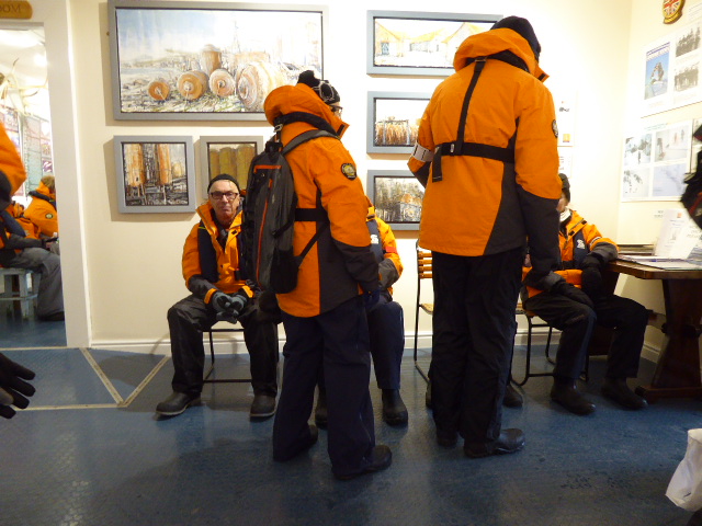 A woman from the expedition crew realises that things are getting out of hand and that Harvey can’t control us. She calmly explains that the first 12 people will be taken to the ship and the rest of us should all wait in the museum until we know if the zodiac has made the trip safely. If it does, there are enough zodiacs to take us all back quickly. She explains that this is only a temporary drop in the wind and we must act quickly but efficiently. The group calms down but anxiety still rules. We try and visualise our lovely comfortable bed on board Seabourn. It’s a lovely thought but doesn’t really help