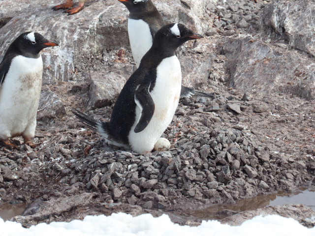 Competition for the best and highest nest is strong. The pebbles have to be brought up from the beach one at a time in the penguin’s beak which is a long and strenuous job. It is much simpler to steal the pebbles from another nest.