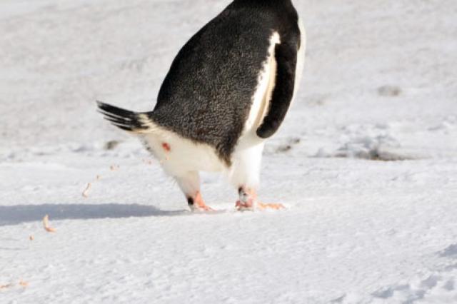 The poop can travel some distance hitting other penguins in the face or body or unsuspecting tourists on the feet.