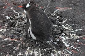 Any penguin nest is marked by lines of penguin poop radiating out from the centre like a clock. The color varies depending on what the penguin has been eating. If it is white they have been eating fish, pink and they have been eating krill, mixed colors and they have been having a smorgasbord.