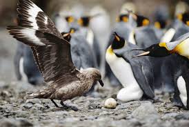 The penguins fiercely guard their chicks but are no match for the aggressive skua