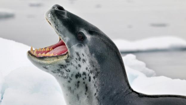But you know the saying about a leopard and its spots. It applies to the leopard seal as well. As soon as you get a closer look at the head and mouth, you realise that those teeth are not necessary for eating krill.