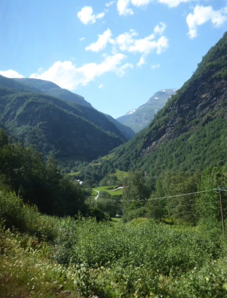 We return to Flam which is enjoying a heatwave. This means the temperature is in the high 70’s (28 C) and I have to say it is perfect. A beautiful sunny day in a spectacular spot. The locals don’t see these sort of temperatures very often and they are making the most of it. They rush to the little pebble beach and jump into the waters of the fjord. Those that planned ahead brought their swimsuits, those that didn’t jump in completely naked.
