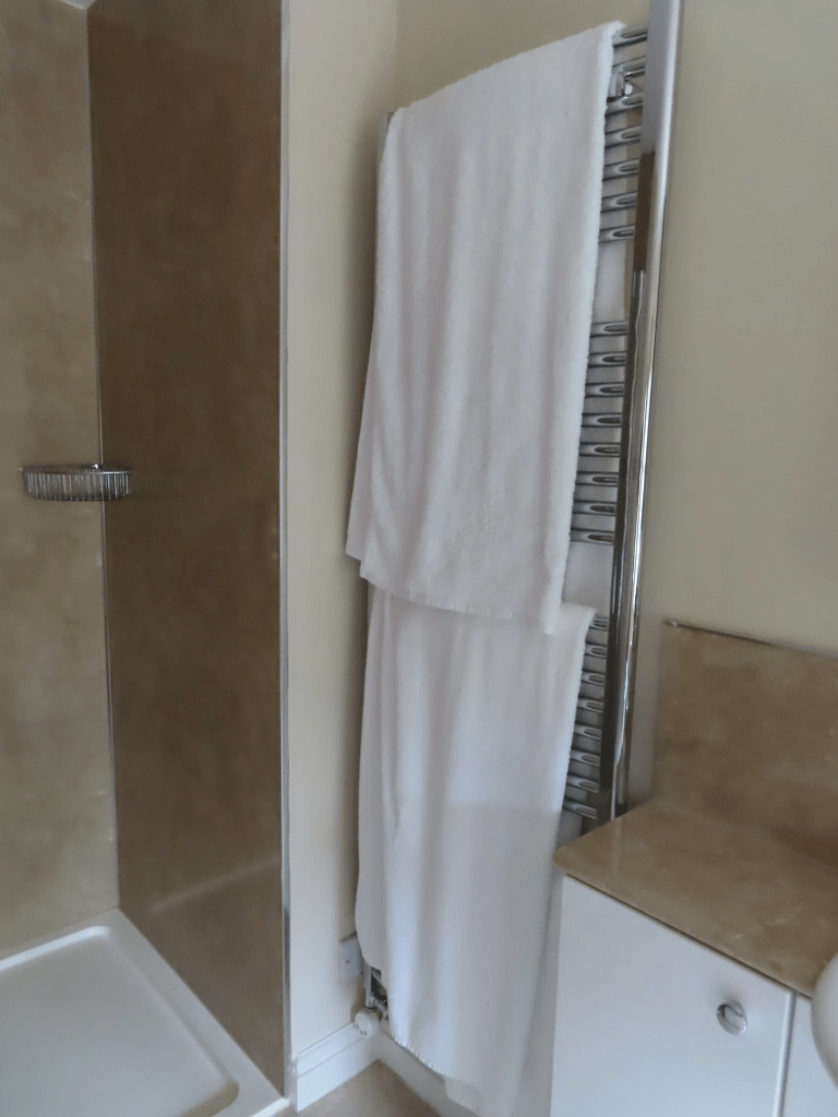 We checked the bathroom. Window open, heating off. But it had the largest heated towel rail we had ever seen. It must have been at least 7ft tall.