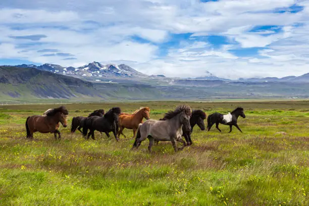 The Icelandic horse is a stocky animal with short legs, a round body and a neck wrinkled with fat. They have a large shaggy mane that often covers their face. Actually they resemble an aging pop star.