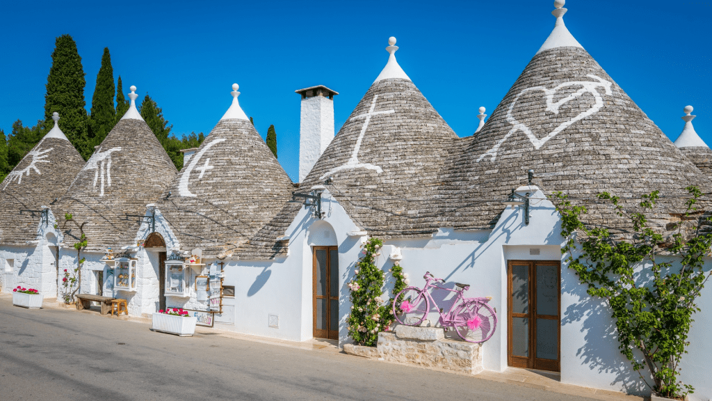 These curious conical-roofed whitewashed structures are clustered in pockets around the area of Puglia like toadstools. They are called trulli and they can be found nowhere else in the world. The largest concentration of trulli is in Alberobello, a town of just over 10,000 people .