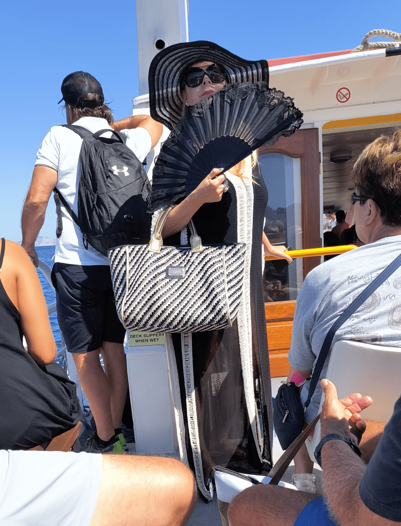 Humbly pleading for pardon, the Fabulosity Meter reveals a sudden wardrobe malfunction. Despite this, our stylish traveler radiates and unintentionally steals the show. Is the unaware buddy really aware of the beautiful situation based on his surprised expression? A festive comeback is promised as summer draws to a close. Never forget that a quick rearview check never hurts!