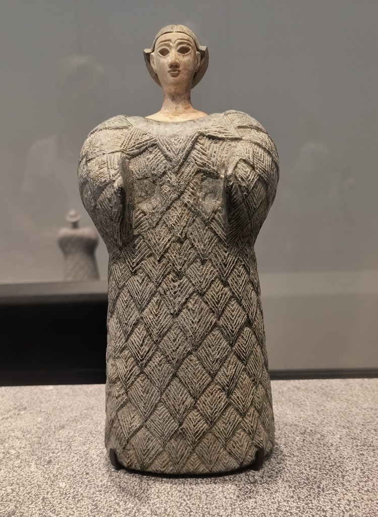 This poor woman in a rather unflattering woolen dress created some 6000 years ago obviously felt the cold.