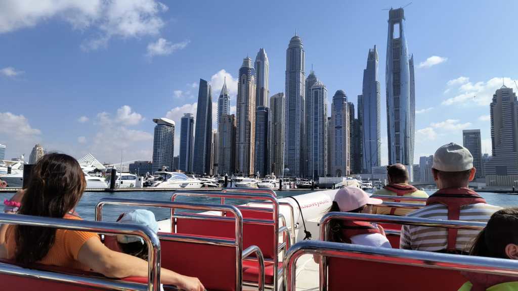 As we sail out of the marina where boats can go no faster than five knots we have a great view of some of the skyscrapers